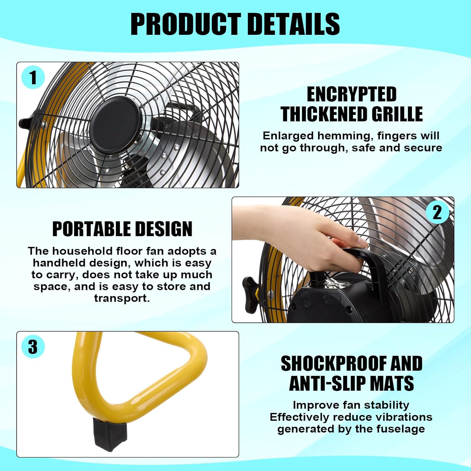 Quality Materials: our rechargeable solar panel fan are made of solid metal and ABS materials, and the solar panels are made of poly silicon, which is sturdy and reliable to ensure your long term use; Both sides of the mini solar panel fan are designed with encrypted and thickened metal protective grilles, which prevent fingers from passing through