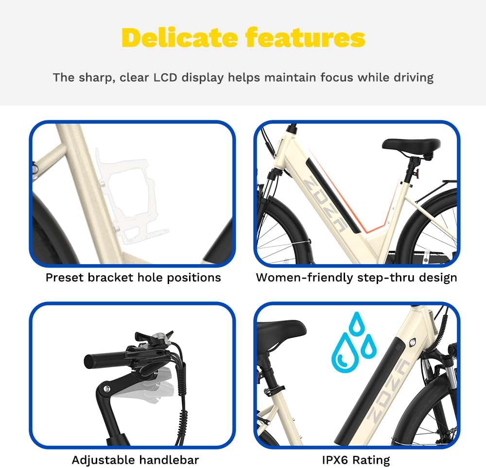 ZA02 Electric Bicycle – The Ultimate Ride for Comfort, Power, and Style Experience the perfect blend of power, performance, and comfort with the ZA02 Electric Bicycle. Whether you're commuting through the city, tackling light trails, or simply enjoying a leisurely ride, this e-bike is designed to meet all your cycling needs with ease and style. Powerful Motor for Every Ride The ZA02 features a peak output of 1200W, providing you with the power to conquer hills, speed through the streets, and enjoy effortless cruising. Whether you're in need of a little extra boost or want to let the motor take over, the ZA02 ensures a smooth, comfortable, and powerful ride. Impressive Battery Life Equipped with a high-performance 48V 10.4Ah battery, the ZA02 offers a remarkable range of up to 36 miles on pure electric mode and up to 65 miles with pedal assist. Say goodbye to range anxiety and enjoy longer rides without the need for constant recharging. Speed and Efficiency Reach speeds of up to 22 mph with ease, making this e-bike perfect for quick commutes or recreational rides. The pedal assist system allows you to tailor your effort, helping you ride farther with less fatigue while maintaining a comfortable pace. Designed for Comfort and Accessibility The ZA02’s step-through frame makes it easy for riders of all ages and mobility levels to mount and dismount the bike effortlessly. It’s especially ideal for anyone with limited flexibility, bulky clothing, or simply those who prefer a more comfortable ride. The bike also supports a maximum load of 300lbs (136kg), making it accessible for a wide range of riders. Built for All Types of Riders Whether you're a city commuter, fitness enthusiast, or weekend explorer, the ZA02 offers the versatility you need. Its lightweight yet sturdy design ensures excellent maneuverability and stability, while the powerful motor and long-lasting battery deliver the performance you can rely on.