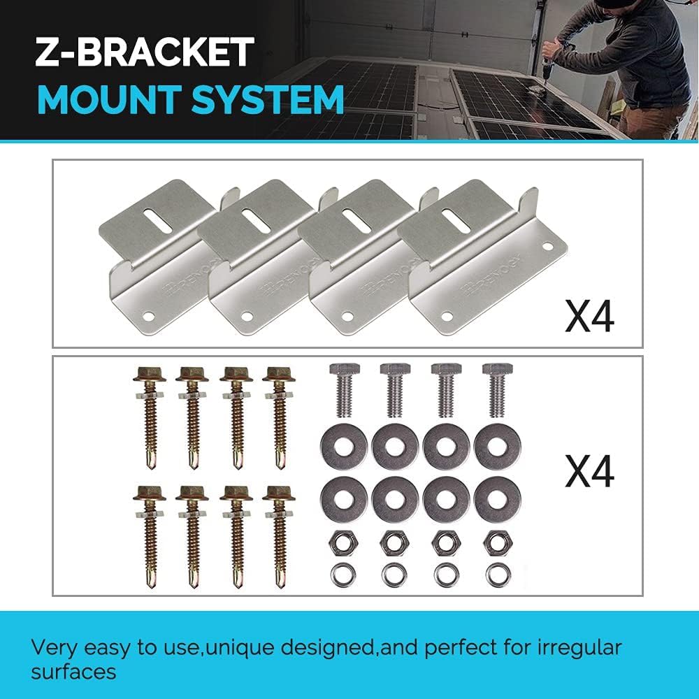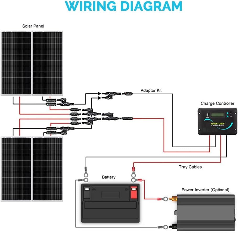 [Wide Application] 1600Wh daily output depends on the 4 hours sunlight availability.This panel is suited for applications that require a smaller footprint, making it a favorite for those with RVs, campers, caravan, boat, Green house and more. [Excellent Performance] 22% High solar cell efficiency. Corrosion-resistant aluminum frame for outdoor use, allowing the panels to last for decades as well as withstand high winds (2400Pa) and snow loads (5400Pa) [Multiple Protection] Adventurer 30A PWM Charge Controller is designed to be used with 12V or 24V photovoltaic systems. This advanced negative-ground controller is designed for aesthetically clean flush mounting on RV or camper walls. It can prevent the battery from over charge, over voltage, discharge and short circuit, reversed polarity protection. [Easy Installation] Pre-drilled holes and Plug&Play cables on the back allow for fast mounting. And it supports 3 types of batteries:lithium batteries, lead-acid batteries, gel batteries. 2 pairs of Y branch connectors are newly added to meet your parallel requirements. 24/7 technical support team