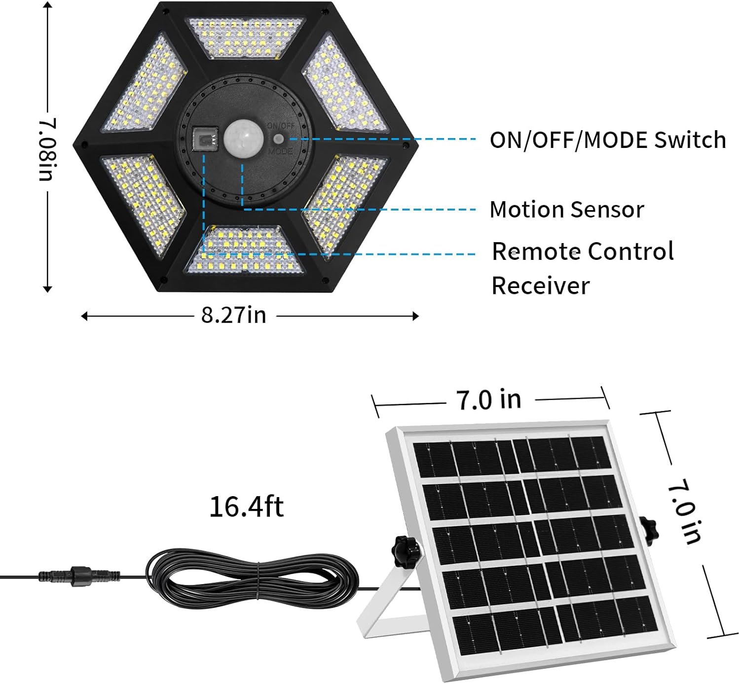 【IP65 Waterproof】Solar barn lights with remote. IP65 waterproof and ABS material can withstand in rain and other extreme weather conditions.