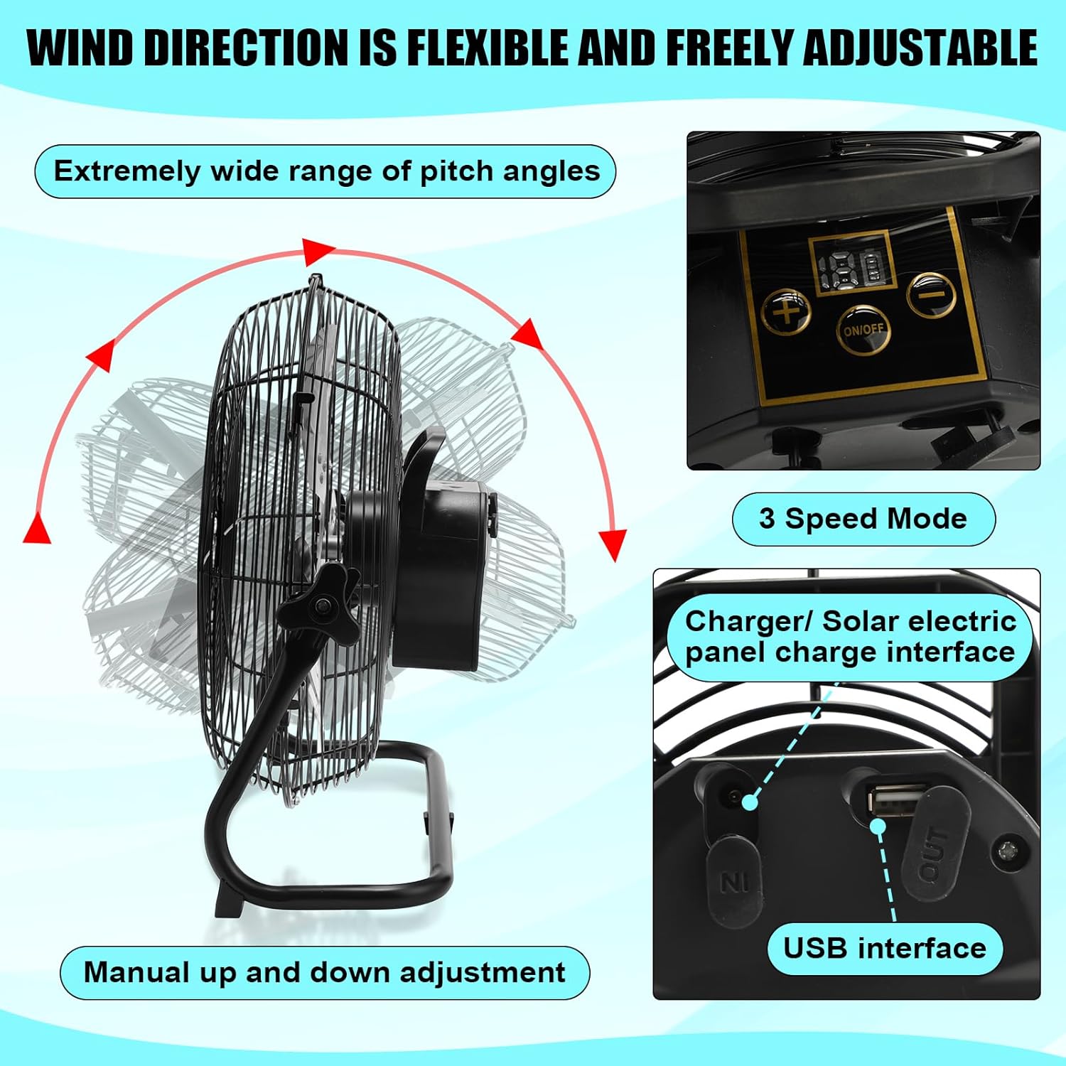 Two Charging Modes: our 2 in 1 solar fan can be charged using an AC adapter and solar panel, we have prepared a 5V AC adapter, a 12W solar panel and anti slip stand; In this hot summer, you can choose solar energy as energy to drive the fan to reduce the temperature, which can be applied indoors and outdoors