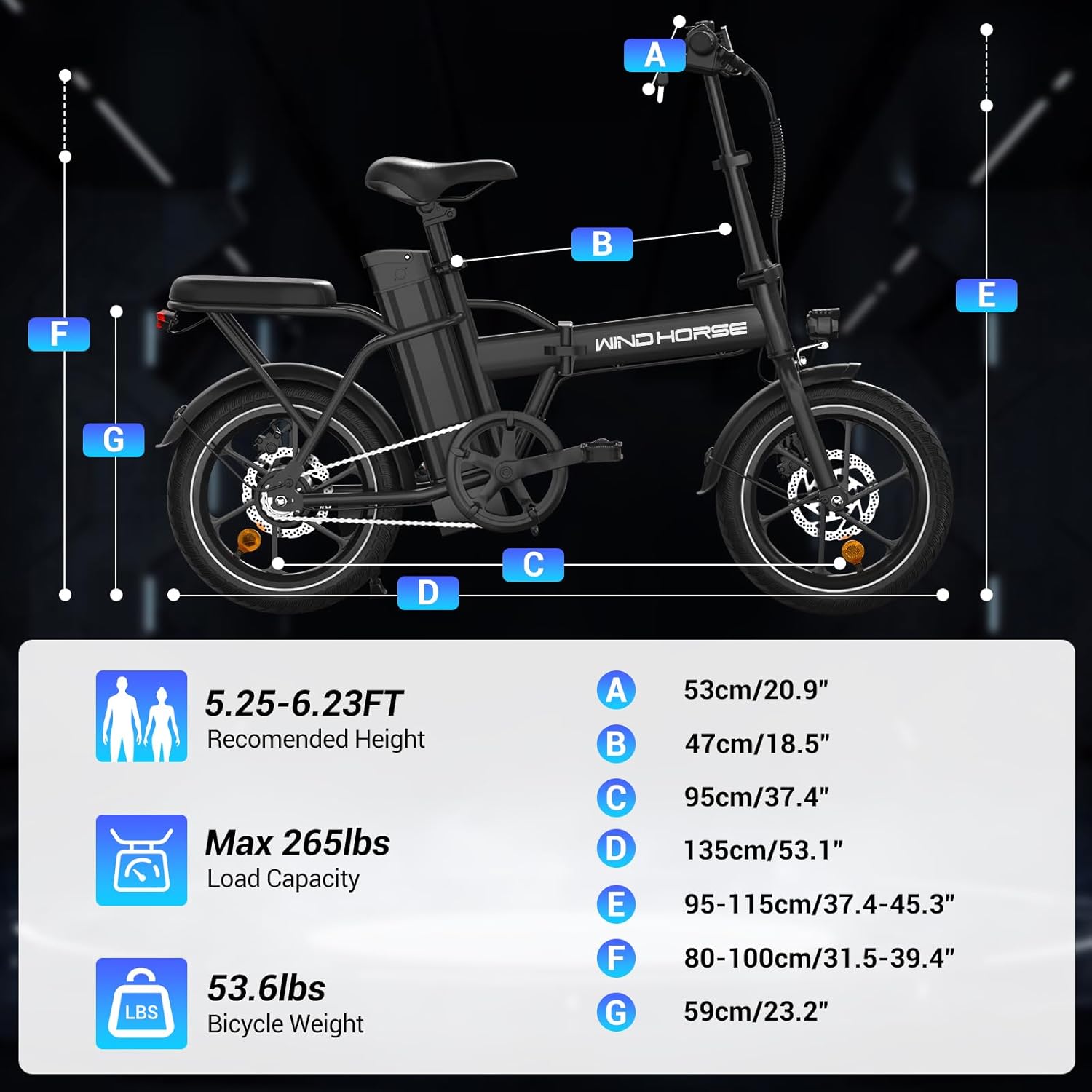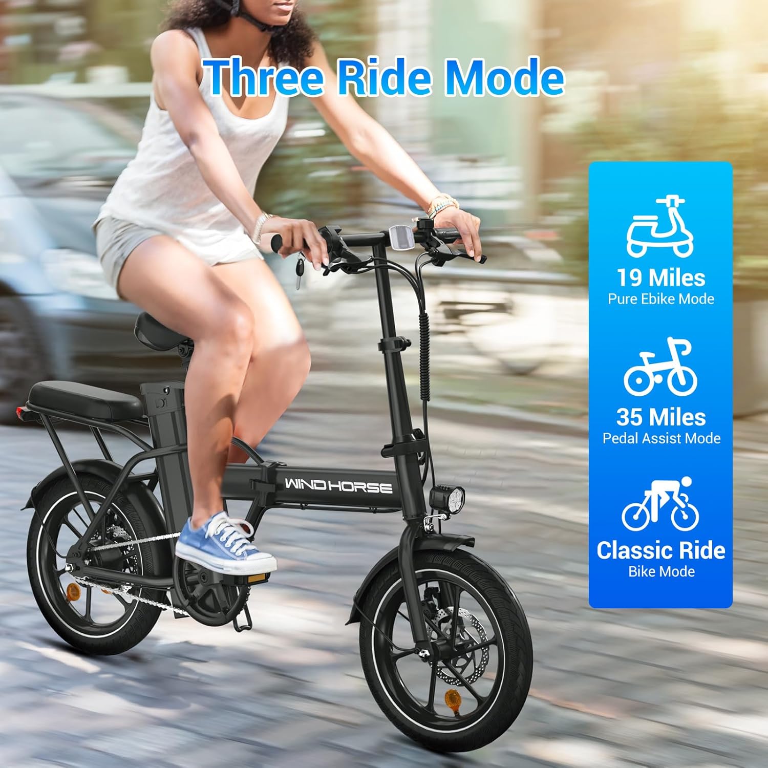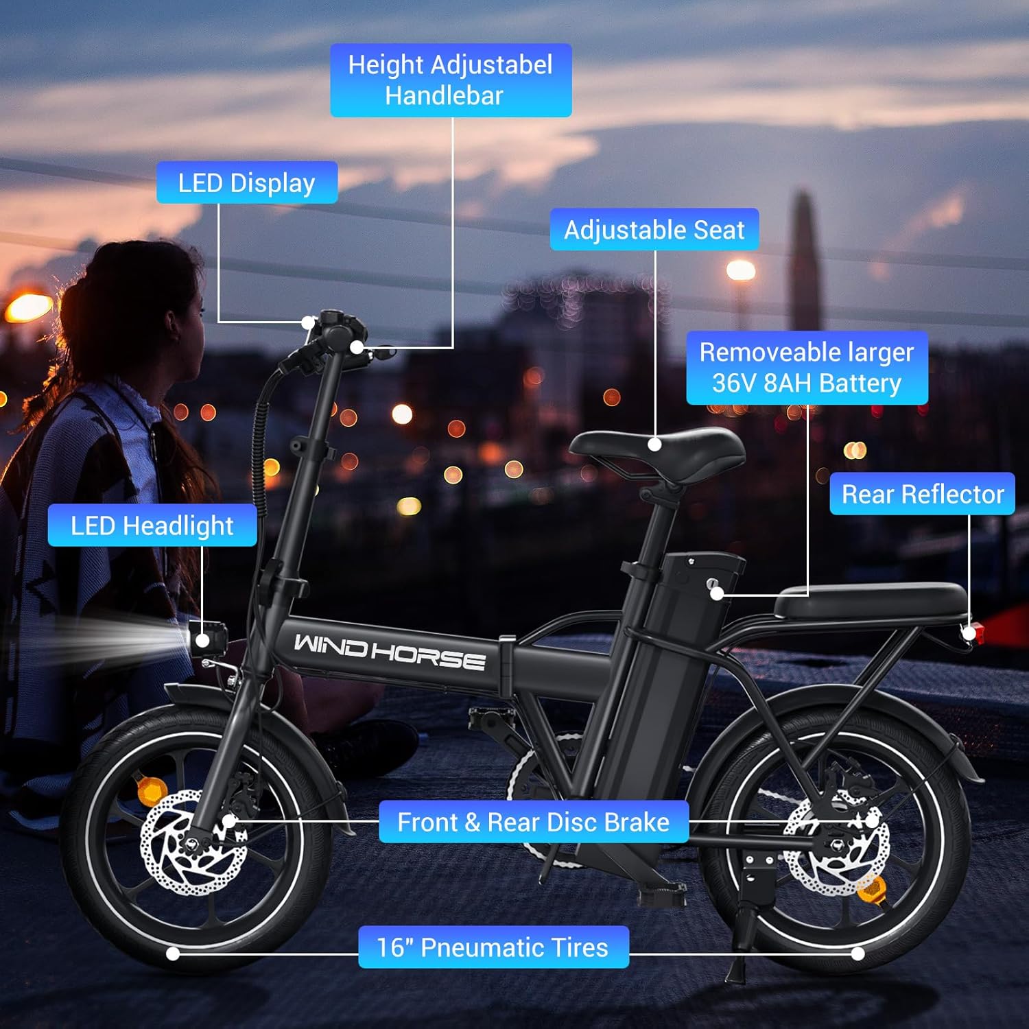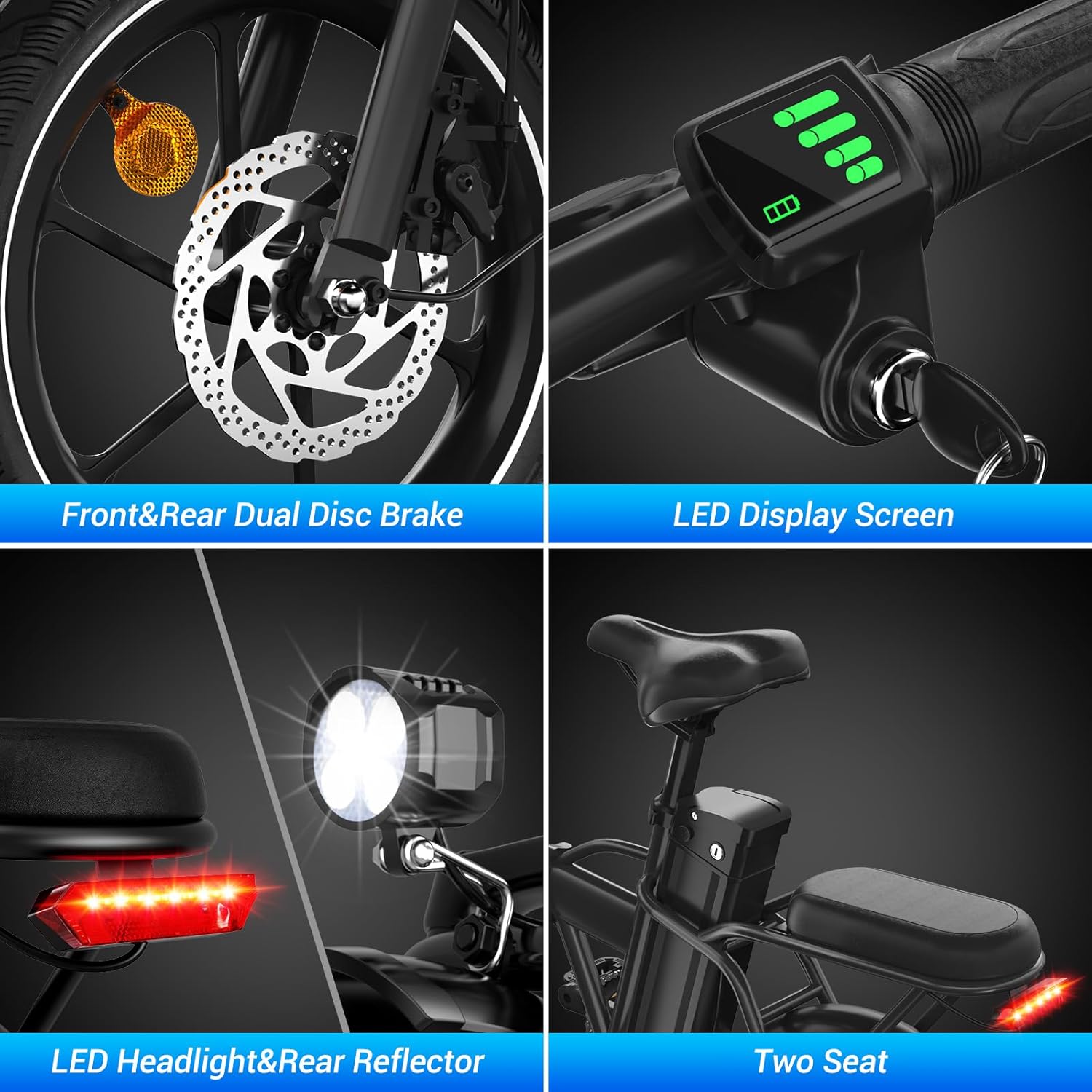 BLACK SEHOMY 2-Seat Electric Bike for Adults 630W Peak Motor, 25MPH Folding Ebike, 16" Adults Electric Bicycles with 30° Uphill, 288WH Removable Battery, 35 Miles Long Range, Commuter E Bikes Teens 14+